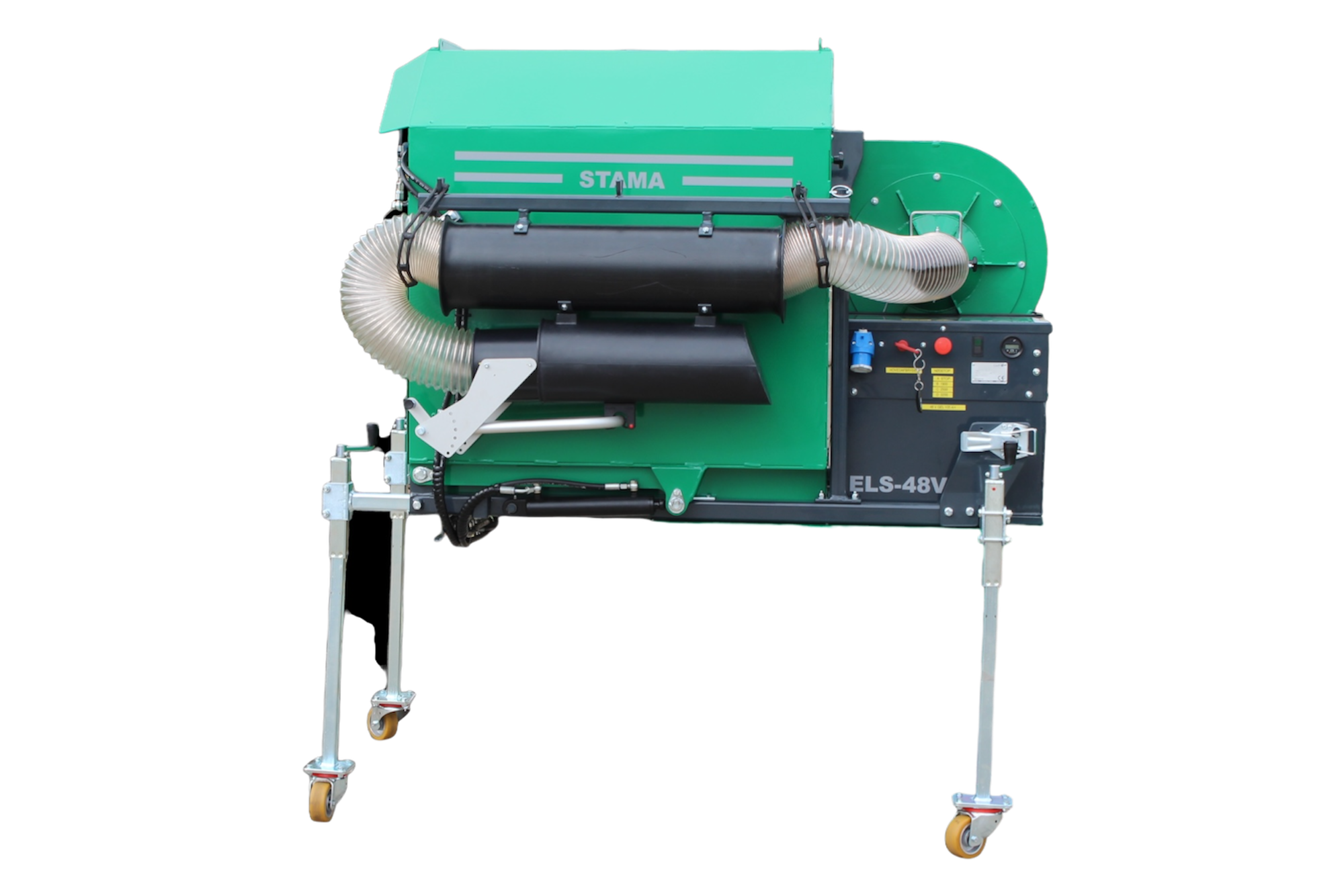 STAMA ELS-L er en fuldelektrisk sugeenhed designet til montering på ladet af STAMA Multi EL, Evo EL eller Maxi EL. Den robuste sugekasse monteres let på køretøjets lad med medfølgende stativ, som også har hjul for nem bugsering og opbevaring.