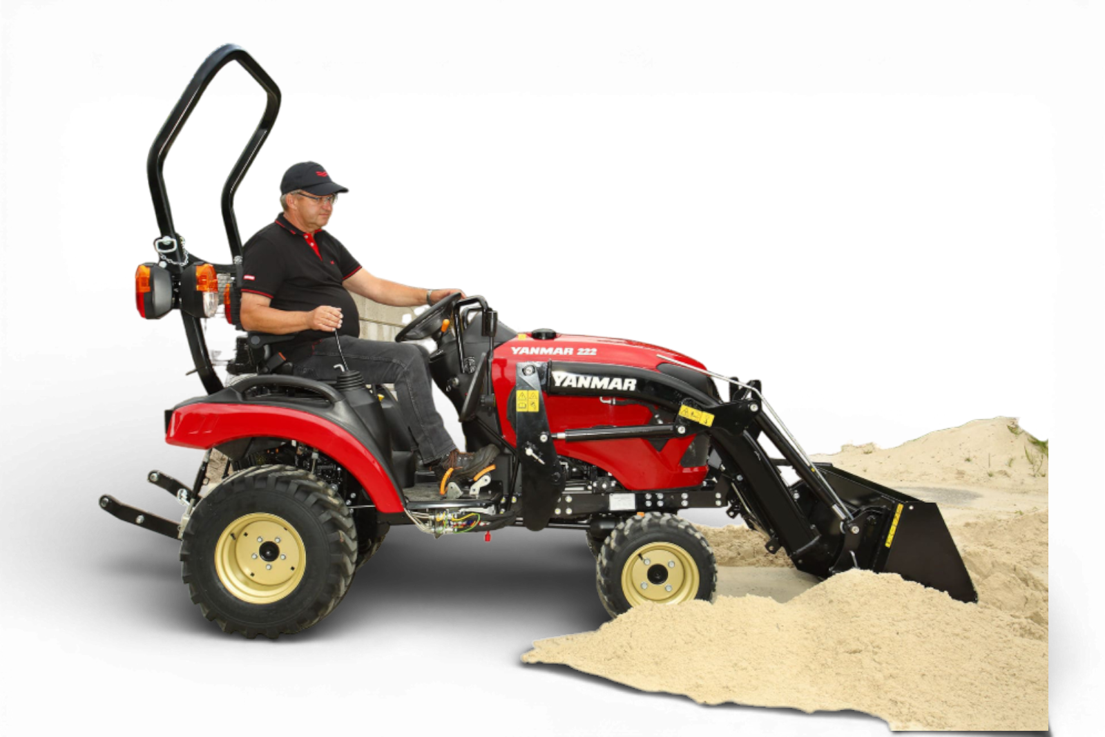 Den kompakte konstruktion gør det nemt at navigere i trange områder, mens den høje frihøjde sikrer en glat og stabil kørsel på ujævnt underlag. Den ergonomiske kabineprioriterer førerbeskyttelse og komfort, hvilket gør Yanmar SA222-R til et ideelt valg til mange forskellige landbrugs- og anlægsopgaver.